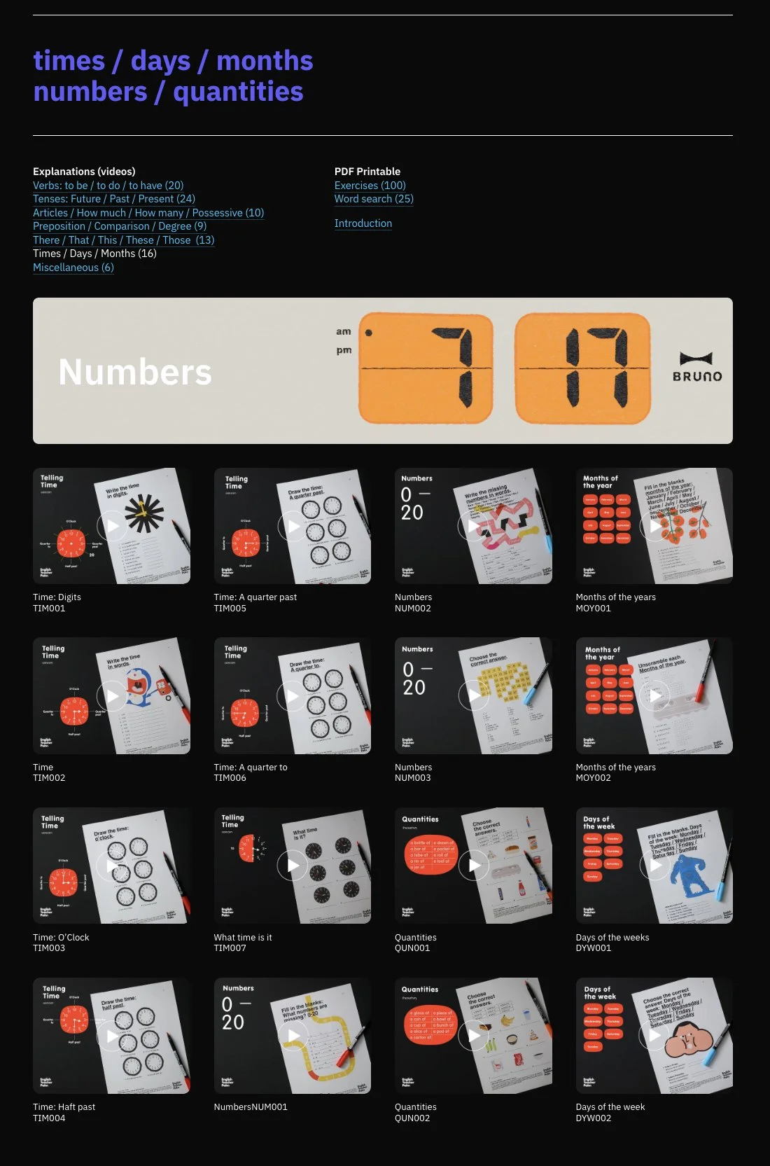 if clause | opposite words | alphabet | colors | occupations | body parts